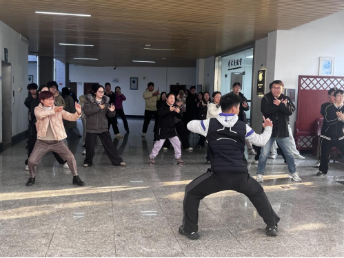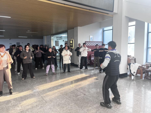 经过一番指导,大家的动作逐渐标准,感受到了“八段锦”运动对身体的调节作用。师生们表示,通过练习八段锦,不仅身体变得更加舒展灵活,心情也变得更加愉悦平和。活动现场反响热烈,氛围浓厚,充分展现taptap点点师生积极健康,昂扬向上的精神风貌。通过亲身体验八段锦这一传统健身艺术,增强了师生们健康意识和科学健身理念,有效促进了师生之间的良性互动。