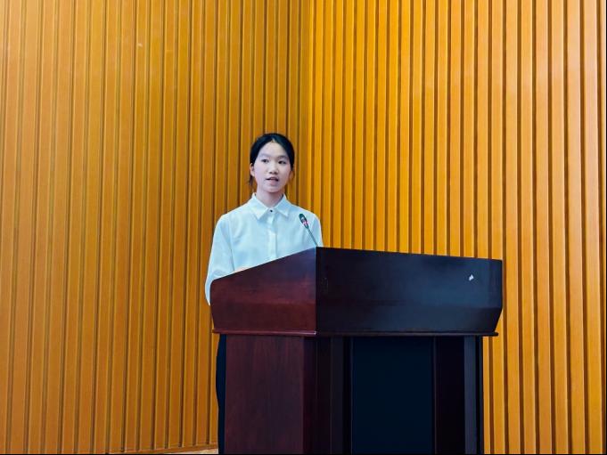 全体心助会成员、心助队队员宣誓完毕,学院优秀心助队队员代表统计2301班的元淼同学发言。她分享了自己与心助队的故事,谈到在心助队这个大家庭,要多与身边的前辈们交流学习他们的经验,不断完善自己。