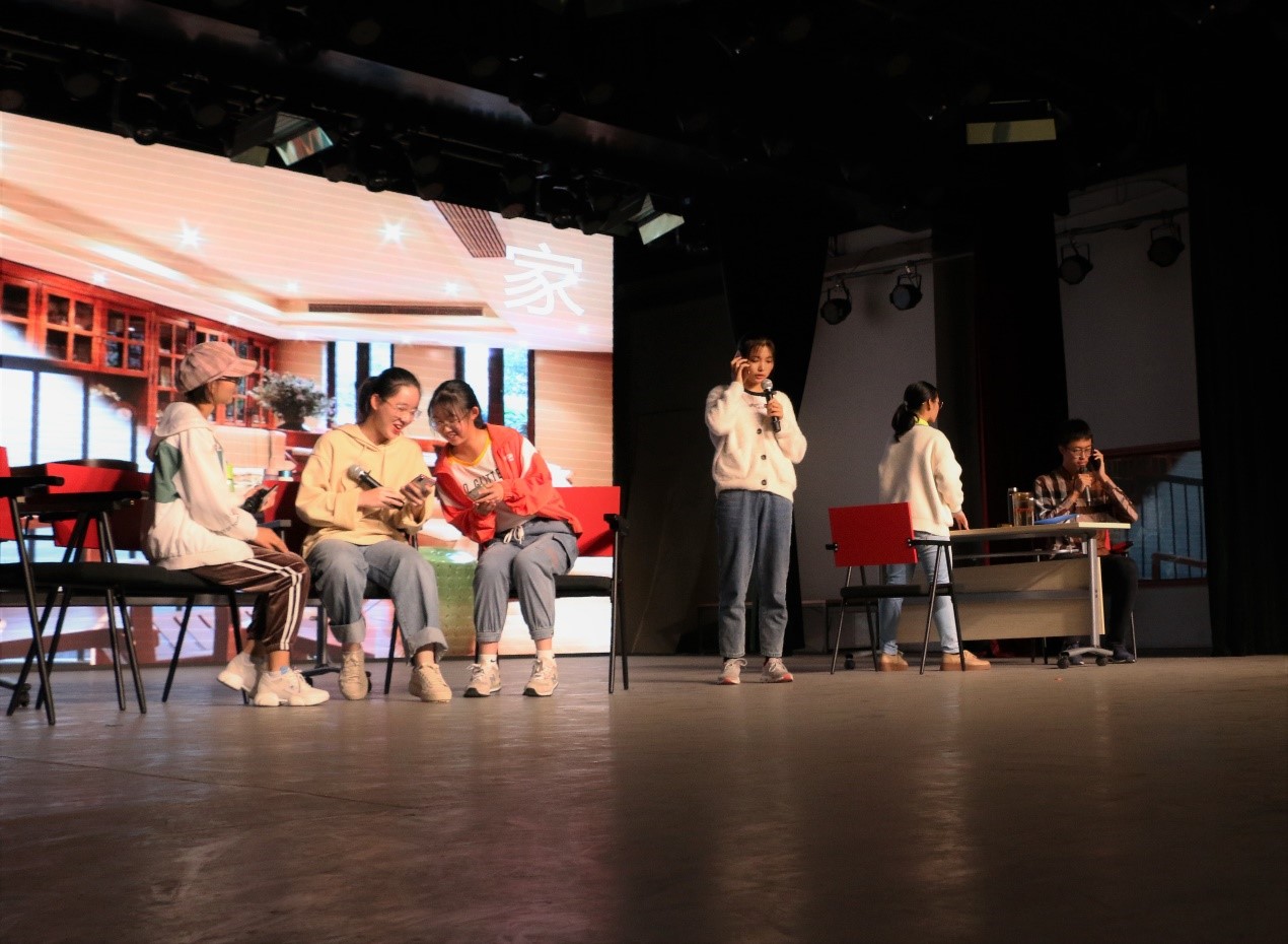比赛过程中,各剧组依次上台表演,尽情展现出各自的青春魅力,为观众奉上了丰富多彩的演出。他们以不同的方式编排出生动形象的短剧,用接地气的表演博得了观众的阵阵掌声,也向观众传达了“爱,自由和青年人”的正能量主题。比赛期间还安排了抽奖和游戏环节,同学们参与“微信墙”进行互动,更是将现场气氛推向高潮。