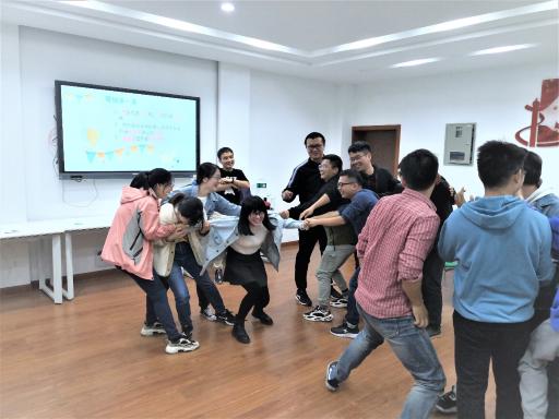 第一个环节是破冰环节,该环节包括“滚雪球”、“开火车”两种形式。在滚雪球活动中,由辅导员老师随机指定一位同学介绍自己“我是爱好XX的某某”,然后后面同学要复述前一位同学说的话并加上自己的介绍,同学们很快进入游戏状态,在辅导员老师的指导下完成了活动或接受惩罚,本来沉闷的氛围也顿时欢快起来。破冰游戏能帮助同学们在玩乐中加深对彼此的了解,同学们在游戏中增进友谊,提升默契。