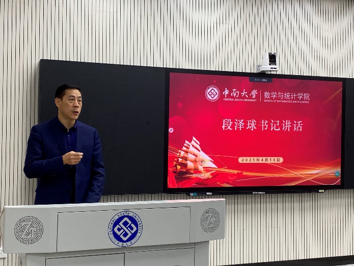 学院党委段泽球书记首先发表讲话,他结合教育部印发的《高等学校课程思政建设指导纲要》,强调全面推进“课程思政”建设的重要性和必要性,就课程思政如何与数学专业相结合谈了自己的认识和体会,他指出课程思政教学比赛是学院推动“以学生为中心”的课堂教学改革研究与创新的重要举措,希望全体教职员工通过比赛都能有所收获成长。学校教师教学发展中心金一粟主任在讲话过程中表示对学院组织本次课程思政教学比赛的充分肯定,学院统筹部署、积极行动,近年一直走在教学改革发展前列,希望以赛促学,全面提升教师课程思政教学能力。郑洲顺副院长宣读比赛规则后比赛正式开始。