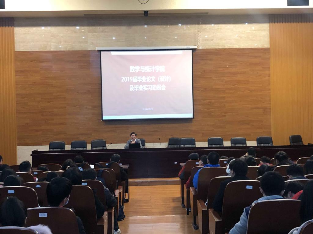 为做好2019届本科生毕业设计(论文)工作,进一步提高毕业设计(论文)水平和人才培养质量,数学院2019年1月2日下午3:00在数理楼1楼大报告厅召开了2019届本科毕业论文(设计)动员会,主持人taptap体育官网入口教学副院长郑洲顺教授,2019届所有的本科毕业论文指导教师和2019届毕业生参加了会议,参会人数达300多人,会议对2019届的本科毕业论文的各项工作做了详细的安排,重申了taptap体育官网入口本科毕业论文(设计)实施细则,会后还针对2019届统计专业下学期开学初前2周要外出进行毕业实习进行了实习动员,对学校与学院的实习教学规定进行再次的学习与强调。