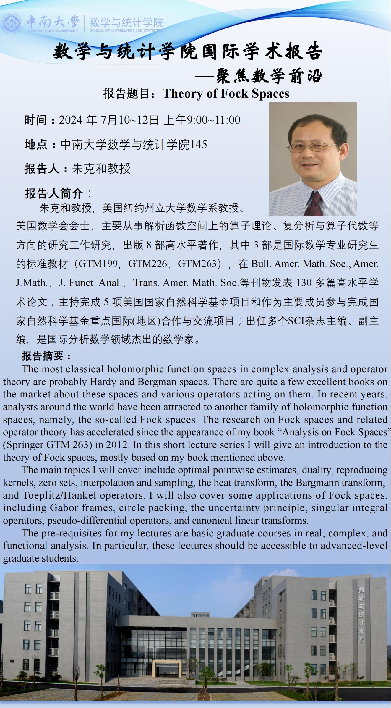 朱克和教授学术报告:Theory of Fock Spaces
